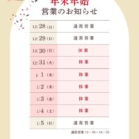 お休みの期間*12/30(土)~1/5(水) 2025年は1/6(木)より通常営業いたします お問い合わせ等がございましたら前日までにご連絡いただきますようお願い申し上げます。 2025年も何卒宜しくお願い致します🐍